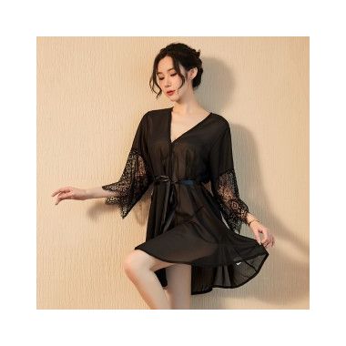 【情趣内衣】网纱开衫式蕾丝家居情趣套装 佐卡莲/ZOCOA